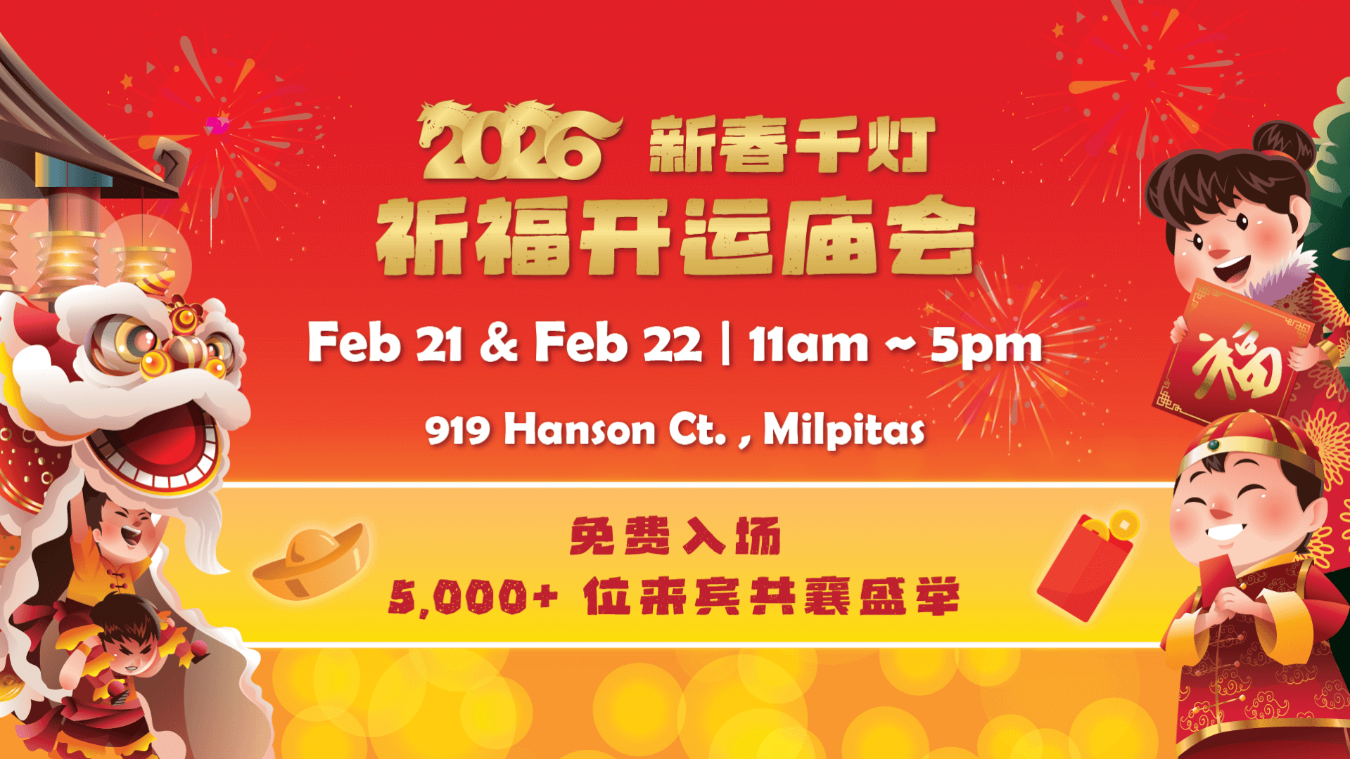 诚挚邀请您参与 2026 新春祈福灯会(Lantern Blessing Festival)——一场为期两天、融合文化与身心健康的社区盛会,预计将迎来 5,000+ 位湾区民众。