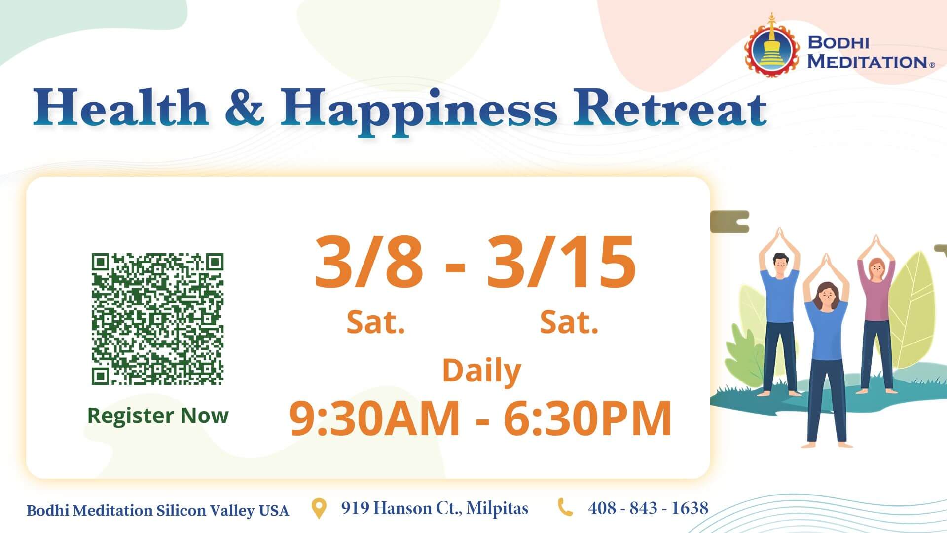 Bodhi Meditation’s Health & Happiness Retreat is your path to improving physical and mental health, as well as gaining happiness in your life.